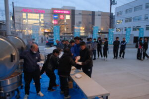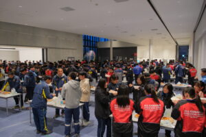 他チームの生徒と食事のテーブルを共にした後は、釜石の郷土芸能「虎舞」を鑑賞したり、各校で一発芸などの出し物を披露するなどで懇親を深めました。