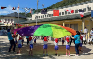 甲東こども園「やってみよう!」釜石シーウェイブス応援パラバルーン